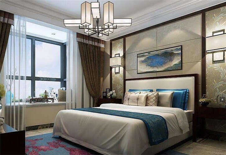 新中式风格卧室翻新装修案例效果图(四)
