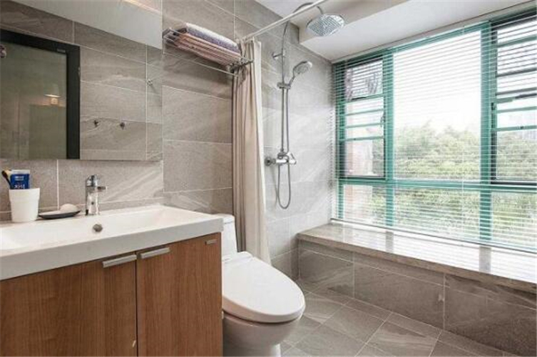 卫生间用浴帘做了干湿分离,飘窗的设计保证了光线的充足。