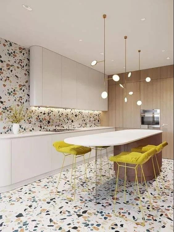 餐厨区域油烟多,而水磨石易清洁,这对cp必须锁上!