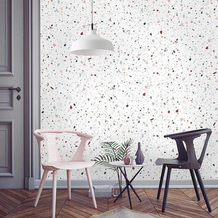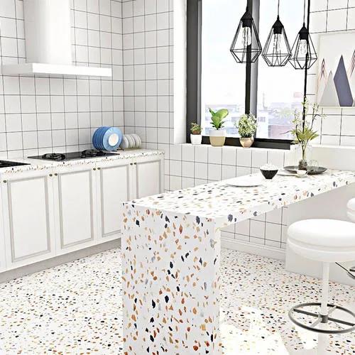用水磨石点缀桌面,星星点点的纹理相映成趣