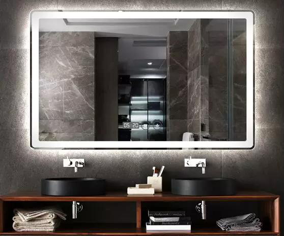 LED灯镜不同于传统的镜前灯,而是采用内部发光,能使光线更加均匀,无阴影的存在。并且还带有除雾,调节冷暖色调的功能。